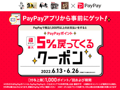 PayPay決済で最大5%戻ってくる!「PayPayクーポン」キャンペーンに「白木屋」「魚民」「目利きの銀次」などPayPay決済が利用可能な当社全店舗が参加中!