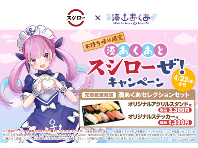 女性VTuberグループ「ホロライブ」所属「湊あくあ」と、大手回転寿司チェーン「スシロー」とのコラボが決定!