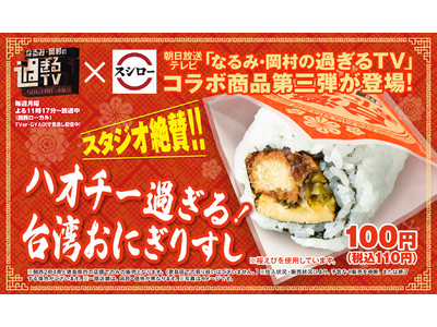 朝日放送テレビ“なるみ・岡村の過ぎるTV”コラボ商品第三弾!“ハオチー過ぎる”をテーマに、人気の台湾グルメをスシロー風にアレンジ「ハオチー過ぎる!台湾おにぎりすし」販売開始!