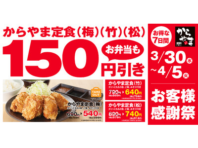 【とってもお得な7日間】からあげ専門店「からやま」にて3月30日(水)よりお客様感謝祭を開催!