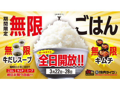 【焼肉ライク】溜まったストレスを解き放て!3月22日(火)から期間限定で焼肉セットの“ごはん・キムチ・スープ”が無限におかわり!