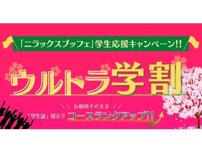 【春の全力学生応援企画!!】ニラックスブッフェにて「ウルトラ学割キャンペーン」開催!! ワンランク上の“食べ放題”で仲間との楽しい思い出作りを♪