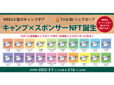 史上初!キャンプ×スポンサーNFT誕生。消費者もオーナーとなって値上がりを期待できるWEB3.0型のキャンプギア「TAKIBIシェラカップ」始動!サンクスカードがQRコードで連動