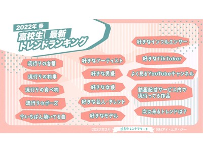 【2022年春!高校生最新トレンドランキング 流行語や好きなアーティスト・芸能人を含む15項目を発表】