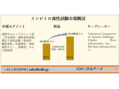 世界のインビトロ毒性試験市場ー毒物学のエンドポイント別(全身毒性、細胞毒性試験、遺伝子毒性試験、眼毒性、臓器毒性、皮膚毒性、神経毒性など)、業種別、および地域別ー予測2022ー2031年