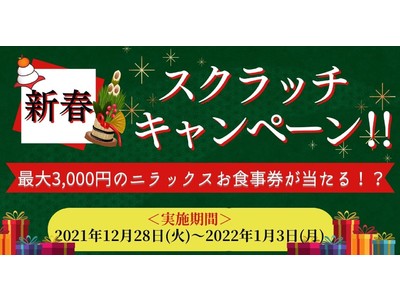 【ハズレなしの運だめし♪】最大3,000円のお食事券が当たるチャンス!!ニラックスブッフェレストランにて『スクラッチクーポンキャンペーン』開催中!