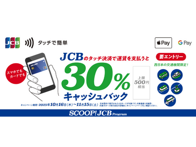 JCBのタッチ決済で、西日本エリアの対象公共交通機関に乗車すると、30%キャッシュバック!
