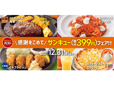 【ガスト】人気メニューが“税込で399円”!今年一年の感謝をこめてサンキュー価格に
