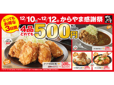 【お得な3日間】からやま感謝祭は4品どれでも550円!
