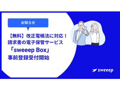 全機能無料、簡単に請求書を電帳法対応で保管できる新サービス「sweeep Box(スイープボックス)」β版、本日より事前登録受付開始