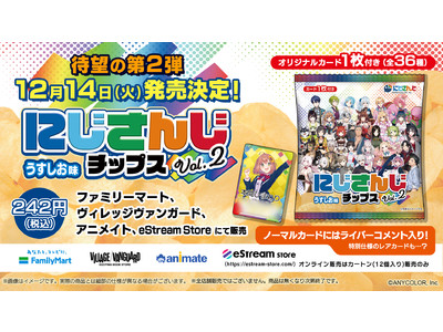 eStream、VTuber / バーチャルライバーグループ「にじさんじ」より、人気VTuber全36種のオリジナルカード付き「にじさんじチップスVol2 うすしお味」が12月14日に発売決定!