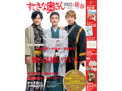 国民的スターが4年連続の表紙に!【稲垣吾郎、草彅 剛、香取慎吾】3人揃ってモダン和装で登場『すてきな奥さん2022年新春1月号』11月19日(金)発売