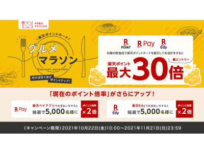「楽天ポイントカード」、「行けば行くほどポイントアップ!楽天ポイントカード グルメマラソン」を実施