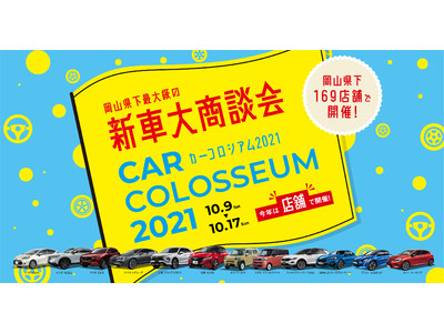 国産車オールメーカーと輸入車ディーラーで実施する、新車大商談会「カーコロシアム2021」が、岡山のモビリティ向上と交通安全の応援をテーマに、169店舗で10月9日(土)からスタート。
