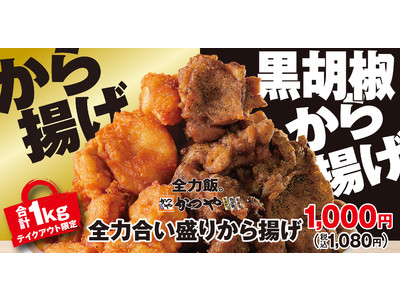 【から揚げだって合い盛りだ】テイクアウト専用「全力合い盛りから揚げ1kg」かつや店舗限定で新登場!